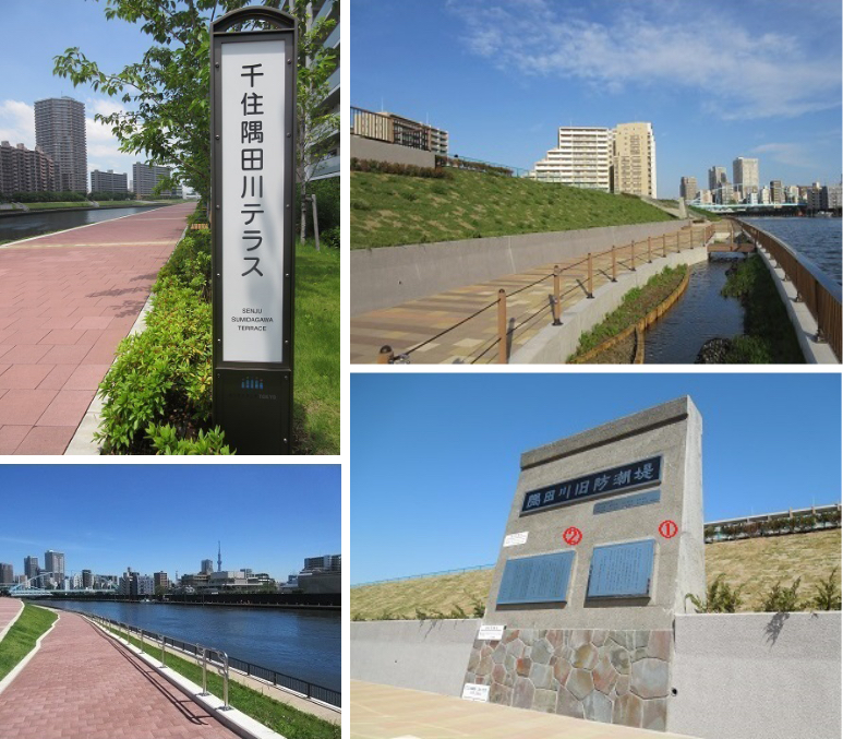 現在、隅田川ではより安全で環境にも配慮したスーパー堤防の整備を進めており、この千住大橋地区においても平成二十九年三月に完成を迎えました。